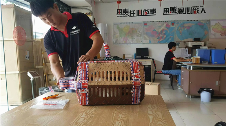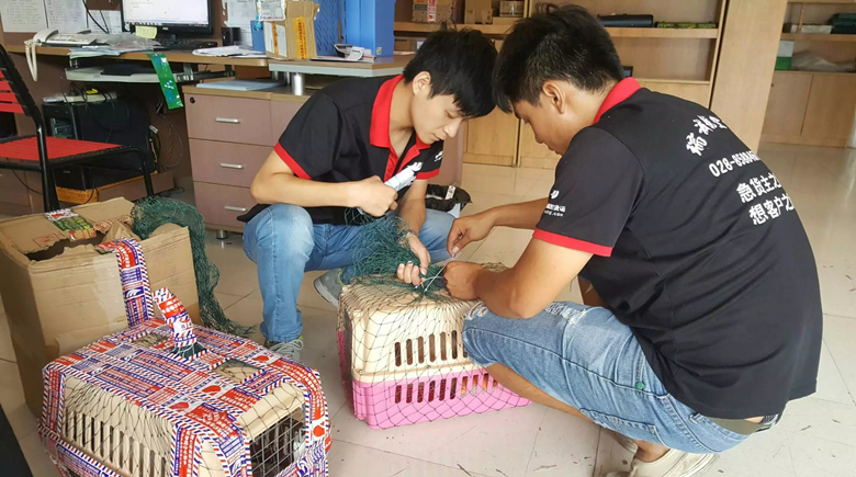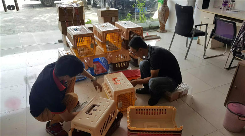 我司同事為了節約客戶的出行時間,一個為客戶制單,一個為客戶的狗狗包裝加固。