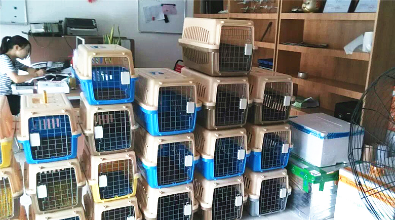 我司同事正在i給客戶到北京和麗江的愛犬進行包裝加護。