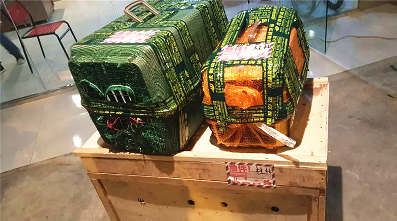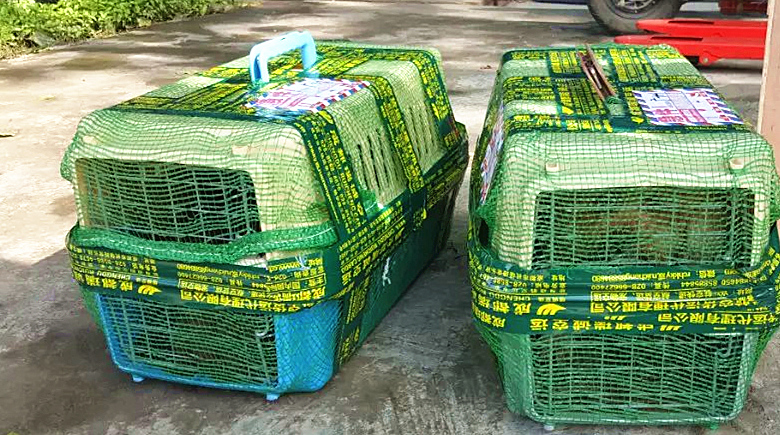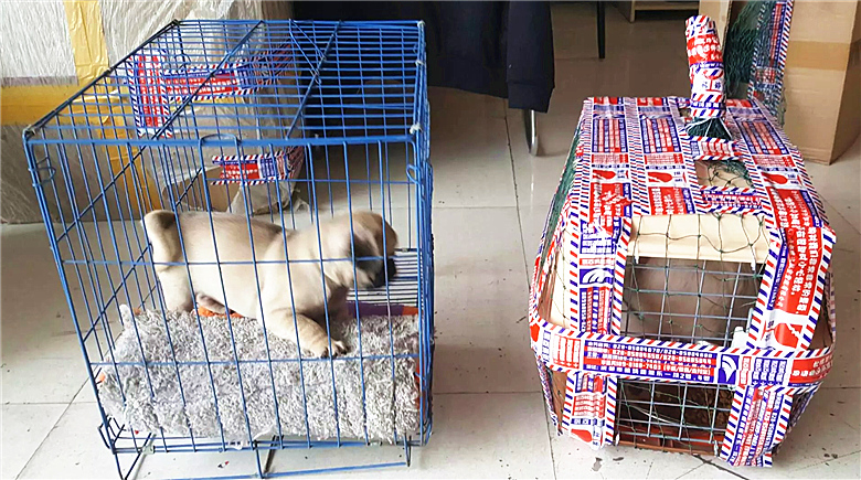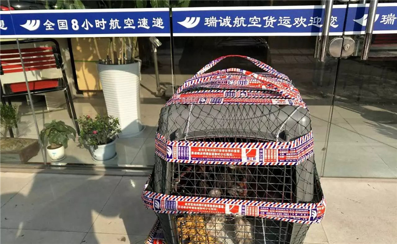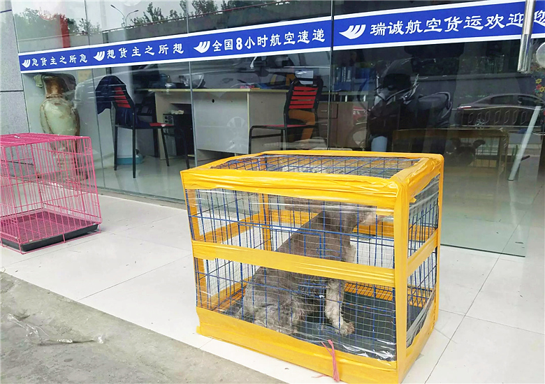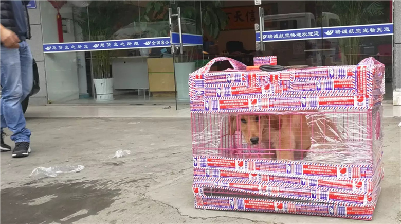 已經處理好包裝的狗狗即將發往合肥新橋機場。