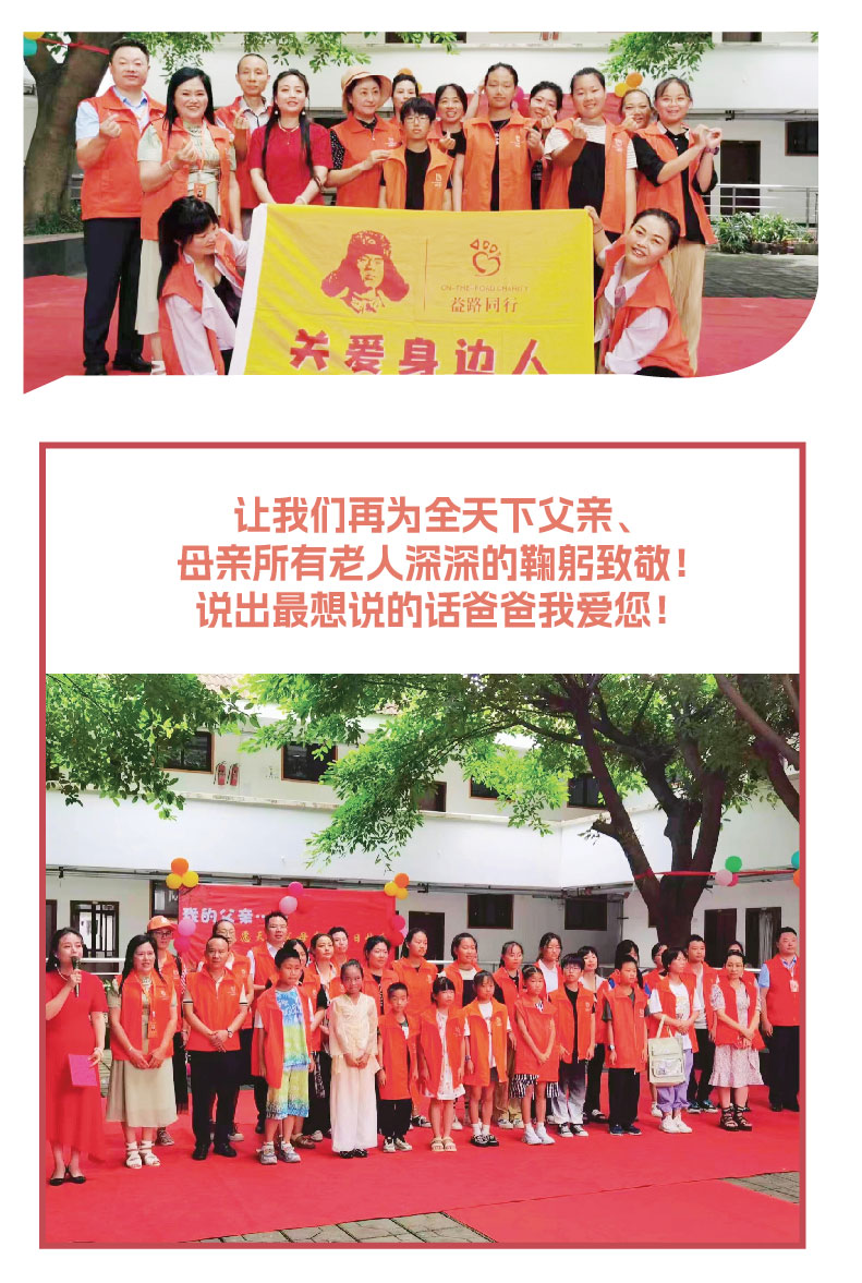 慈愛的目光,溫暖的雙手,嚴肅的語氣,耐心的鼓勵,默默的付出,無怨無悔的奉獻。父愛相伴,幸福無邊。哀哀父母,生我劬勞。父母家中坐,一福壓百禍。父母在,是給我們做兒女積孝德的機會,生而為人,請務必行善,孝順自己的爹娘,善待自己的雙親。祝天下老人們身體安康!志愿者們給老人準備了蛋糕,讓大家一同品嘗這美味的蛋糕,共同分享快樂。一品天下父母福如東海、二品天下父母壽比南山,辛苦志愿者們為爺爺、奶奶、叔叔、阿姨送上蛋糕、并送上自己祝福 。